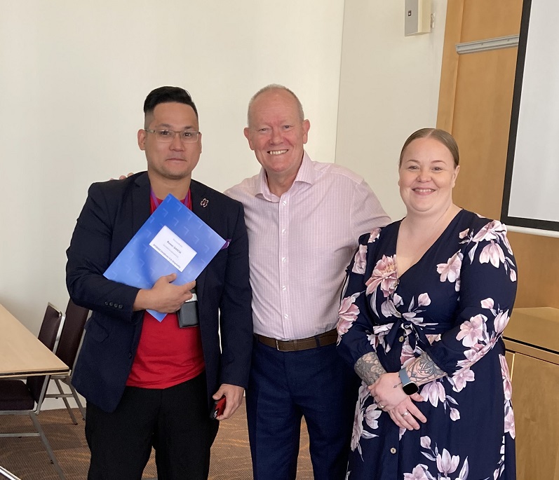 Joseph (L) (pictured with his SQW mentors Steve and Hayley) has completed the Hospitality Rising Stars program and is now working as a Kitchen Steward at the Hilton.